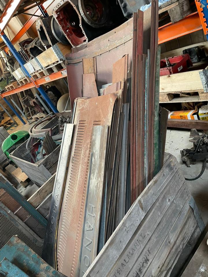 Motoren, Getriebe, Achsen, Felgen, Blechteile, neue Holzdächer, neue+gebrauchte Kotflügel, Diverse Elektrikteile, und so weiter , Alles zusammen waren 5 LKW Ladungen Ersatzteile. Anbei ein paar Bilder es sind wesentlich mehr Paletten… Preis auf Anfrage.
