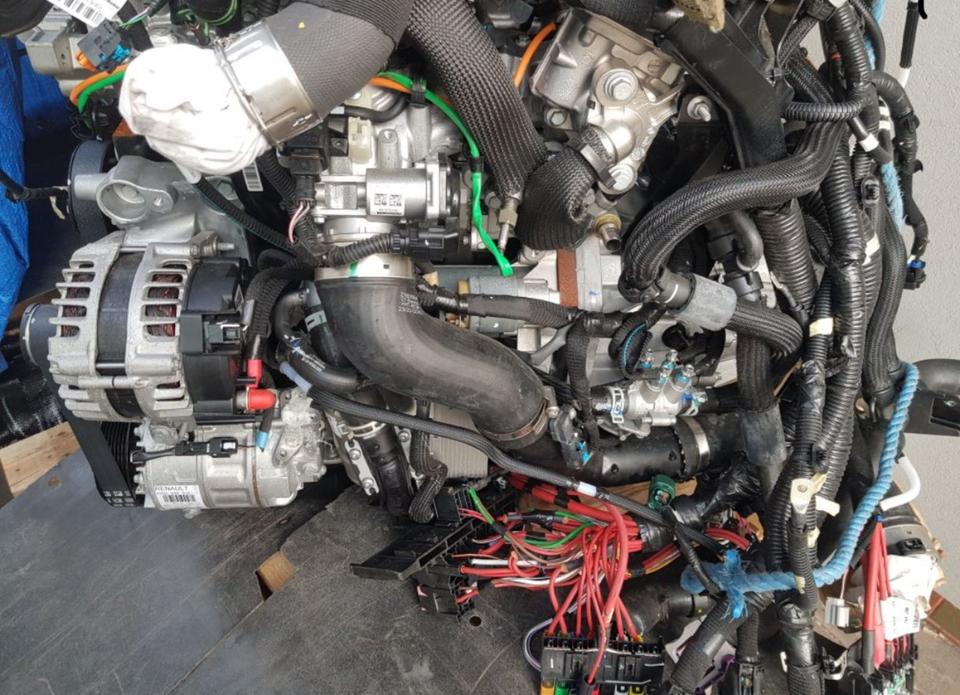 Der Motor ist komplett mit alle Anbauteilen (wie z. B. Einspritzanlage, Turbolader, Lichtmaschine).